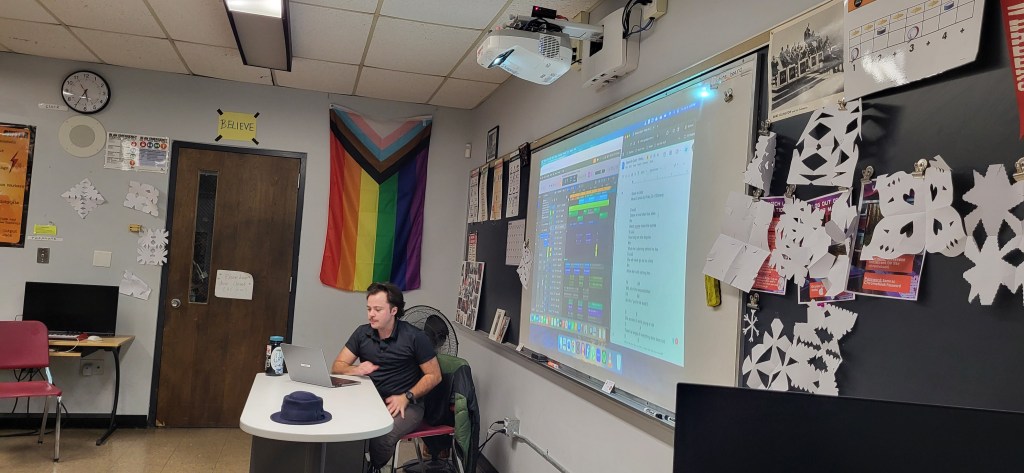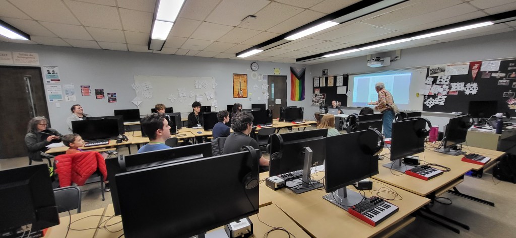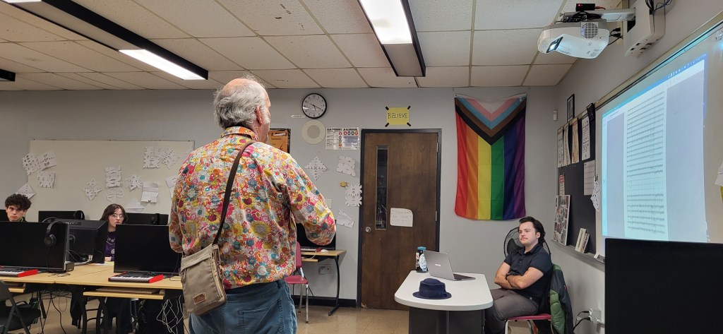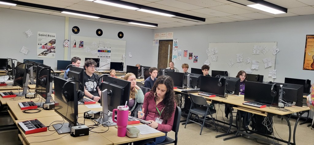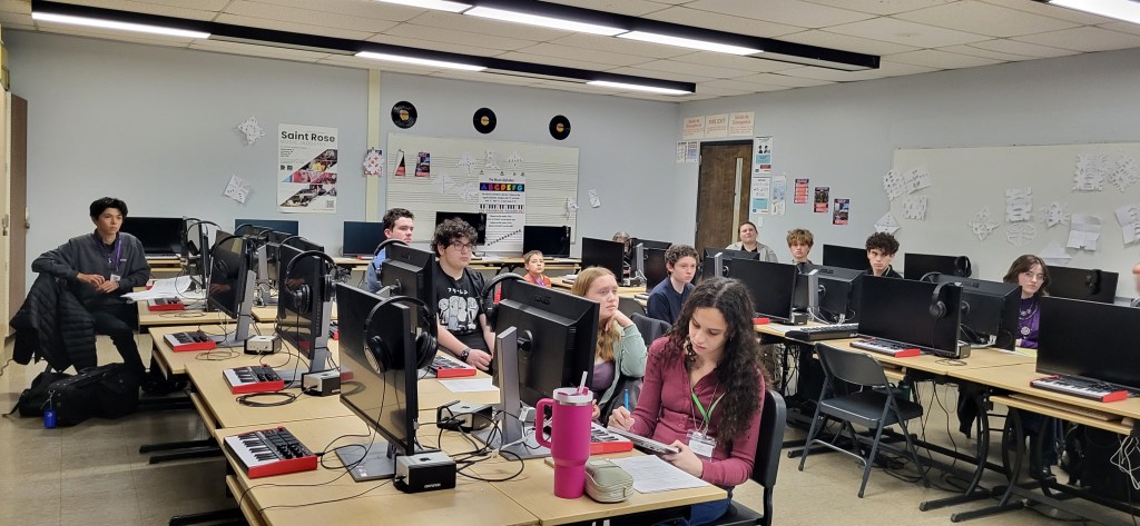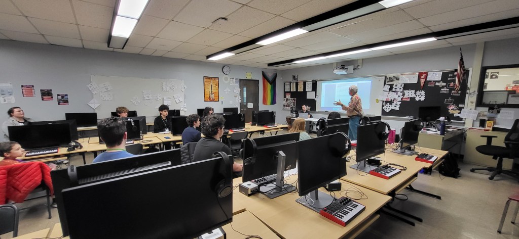 All students who submitted pieces were invited to attend the SEMMEA composition clinic. This year, we had James Bohn from Stonehill College and Levi Cooper, a local area musician, as our clinicians. The clinic was on Friday, January 9th, from 5:00 to 6:30 p.m. at New Bedford High School. Here are some pictures from this year’s festival